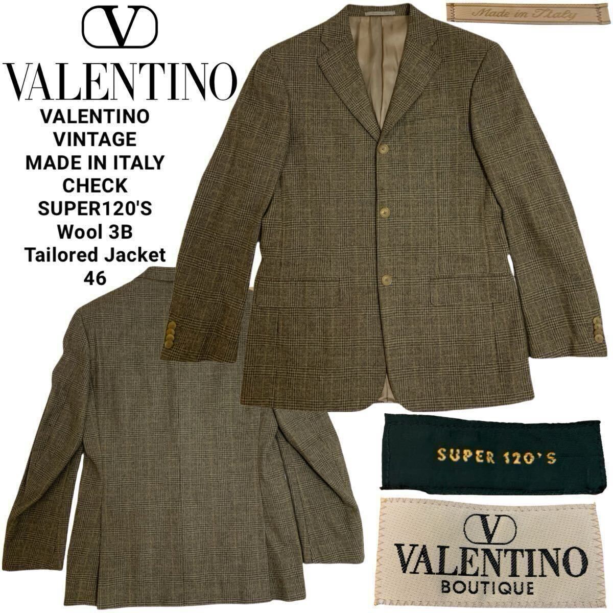 - VALENTINO VINTAGE ヴァレンティノ ヴィンテージ MADE IN ITALY SUPER120'S チェック柄ウールテーラードジャケット ベージュ 46 アーカイブ