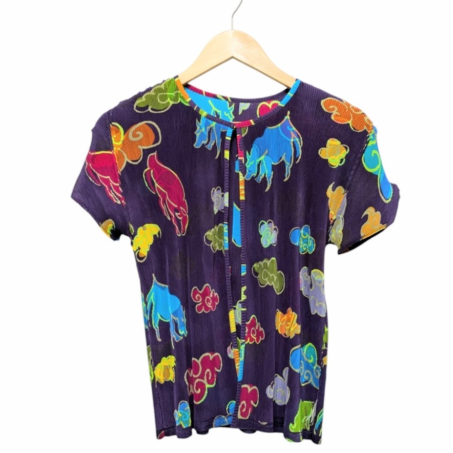 > PLEATS PLEASE ISSEY MIYAKE プリーツプリーズ イッセイミヤケ PP23-FO611 半袖カーディガン トップス シャツ 牛 雲 総柄 パープル 5