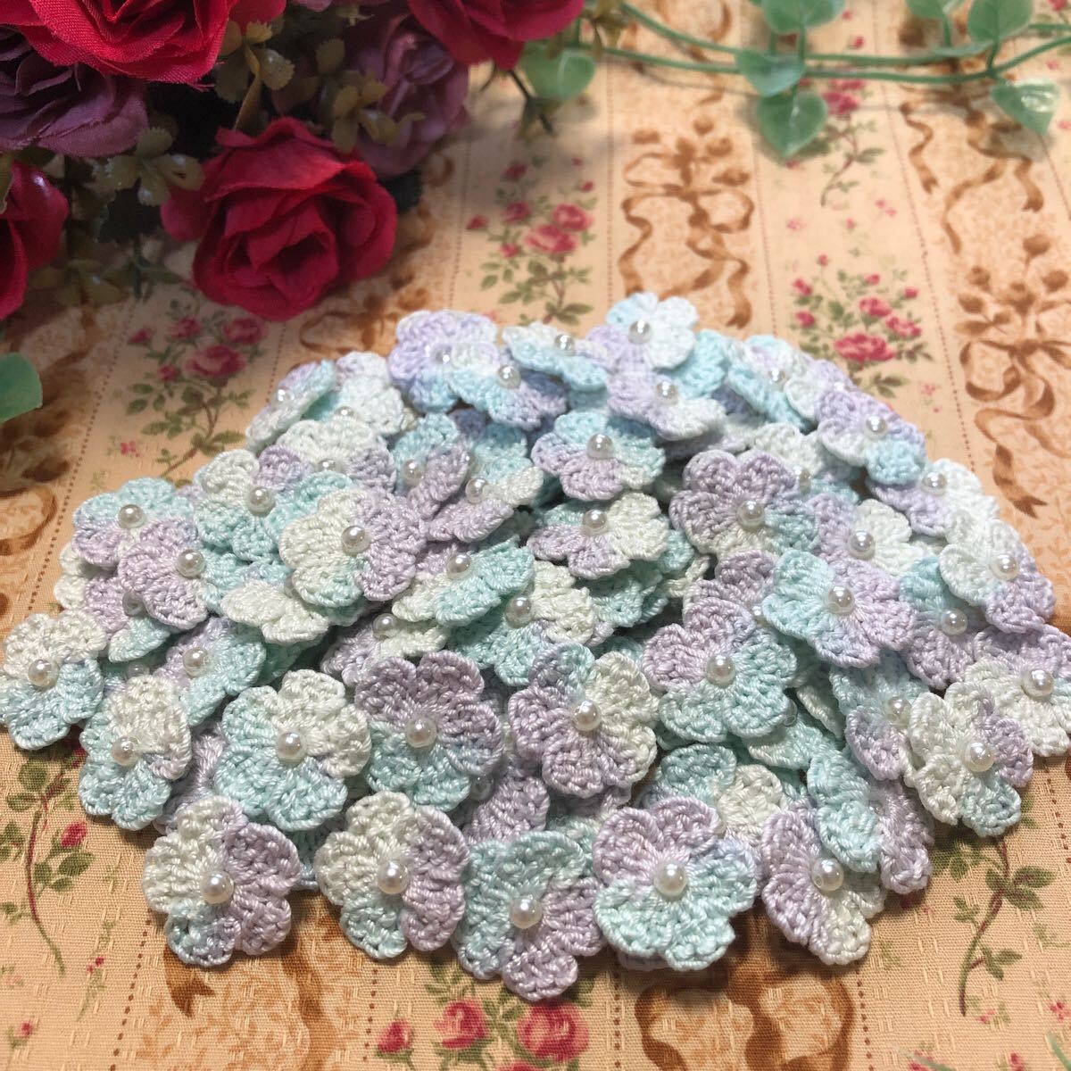 - (No.②)☆ハンドメイド☆可愛いお花(^^)100枚【ミックス】パールビーズ付き モチーフ パーツ等に