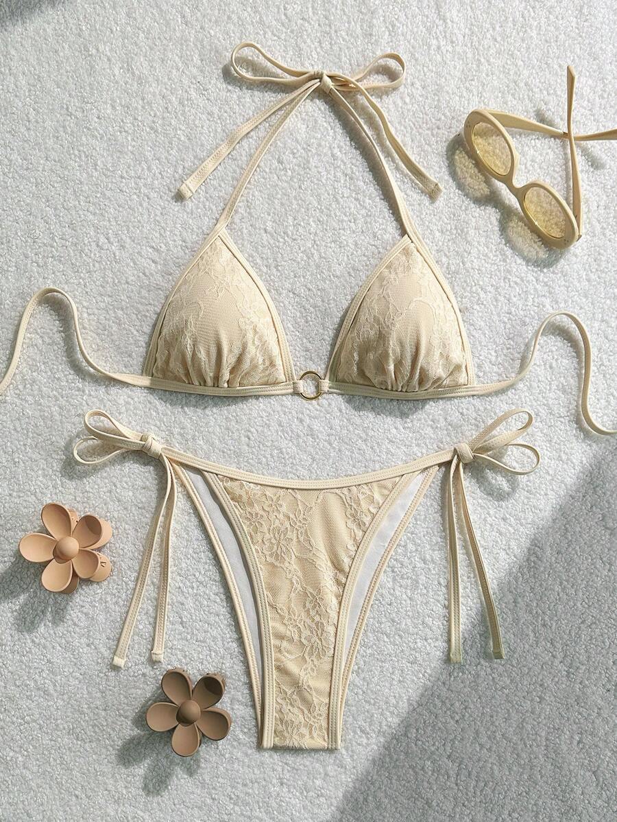 - レディース 水着 ビキニセット レディース夏 ビーチ レース ホルターネック セクシー スプリット ビキニ 水着セット
