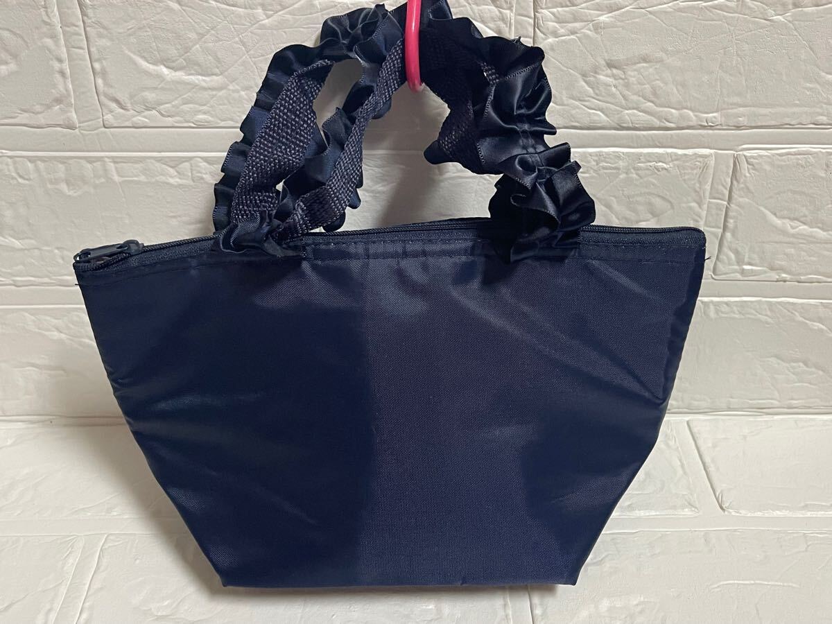 - 新品☆フリルミニトートバッグ 紺色 雑貨小物 小物入れ 旅行 温泉 トラベルに ファッション雑貨