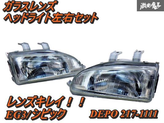 > 【状態良品】ホンダ シビック EG3 DEPO ガラスレンズ ハロゲンヘッドライト ヘッドランプ 左右セット 217-1111 即納 棚16-4