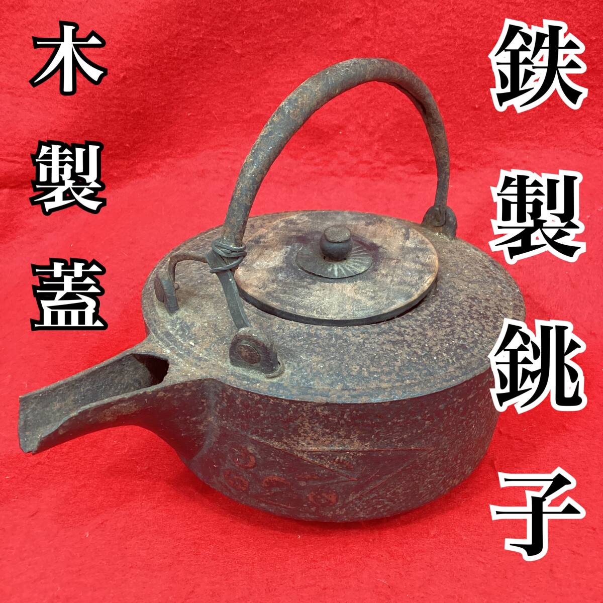 > 【年代物】鉄製銚子 足附 銚子 鉄器 鉄瓶 木製蓋 金属工芸 酒器 水注 水次 ちろり茶道具 現状品 注ぎ口に欠けのようなものあり 【H1568】