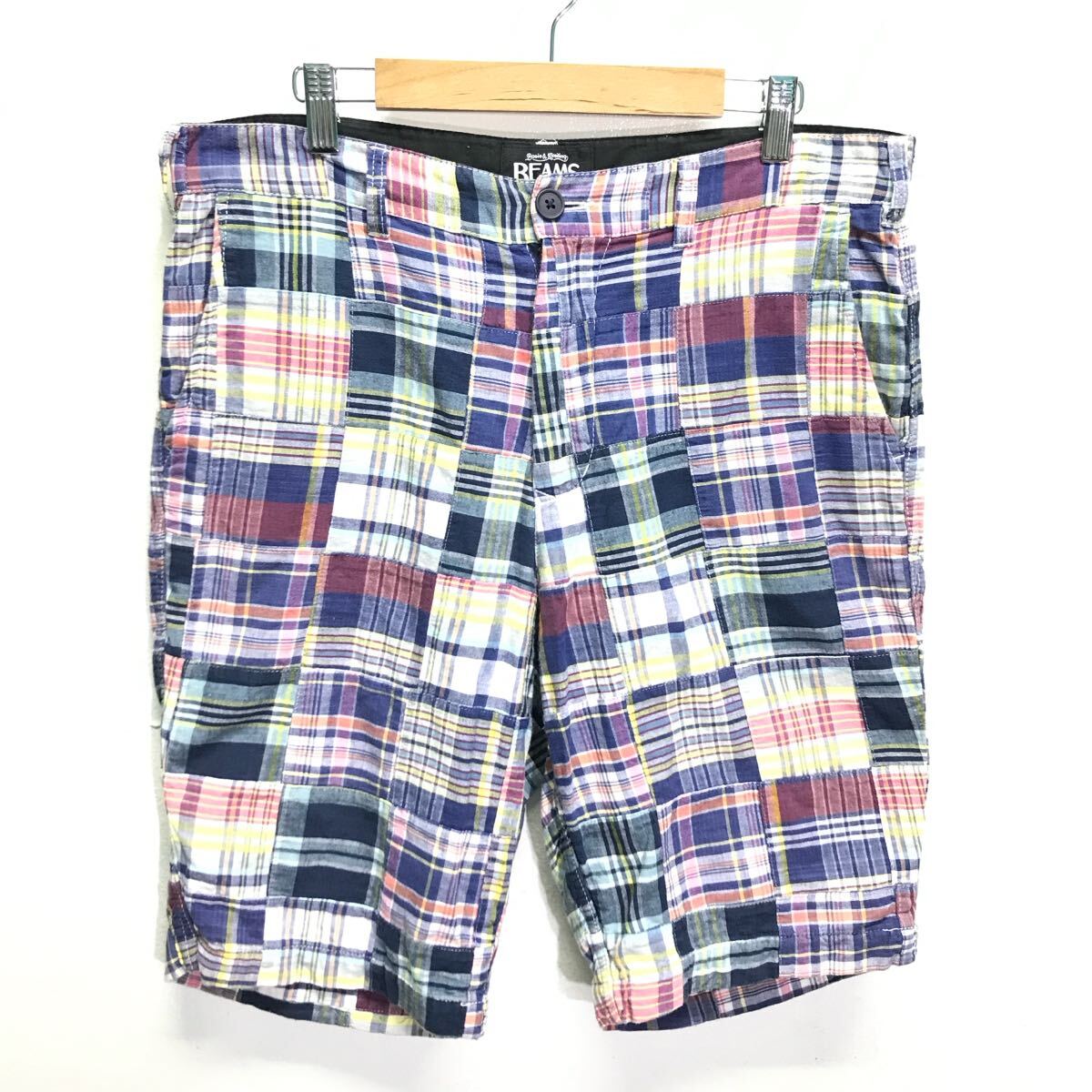 > 定番 パッチワーク◎【BEAMS】ビームス ショートパンツ ハーフ ショーツ アメカジ 古着コーデ サーフ アウトドア マルチカラー L /Y28987ii