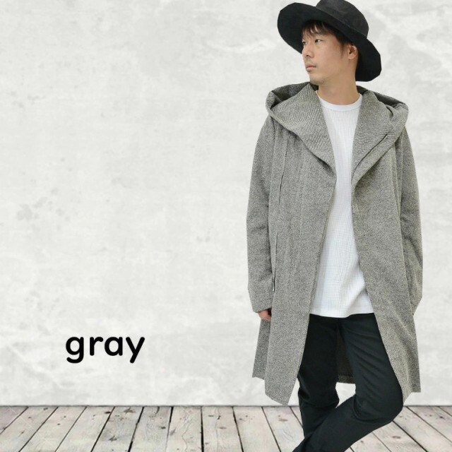 - バイアス織ビックフード フーデットコート 16-9193 メンズ フードコート メンズコート 新品 グレー XL