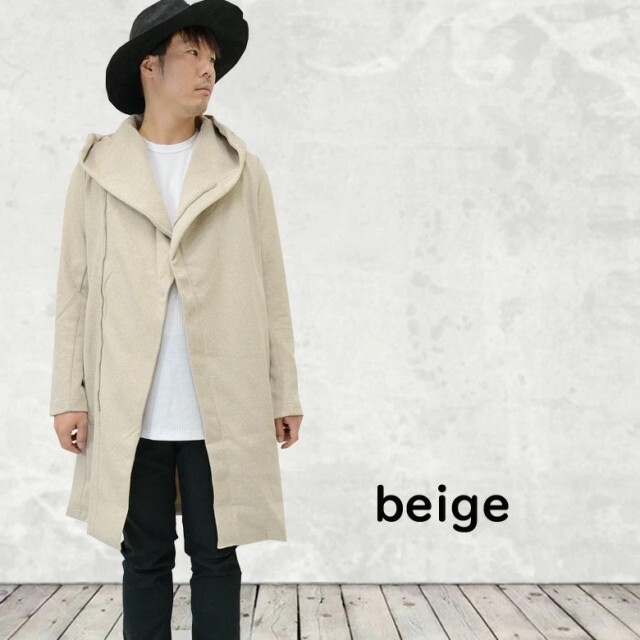 - バイアス織ビックフード フーデットコート 16-9193 メンズ フードコート メンズコート 新品ベージュ M