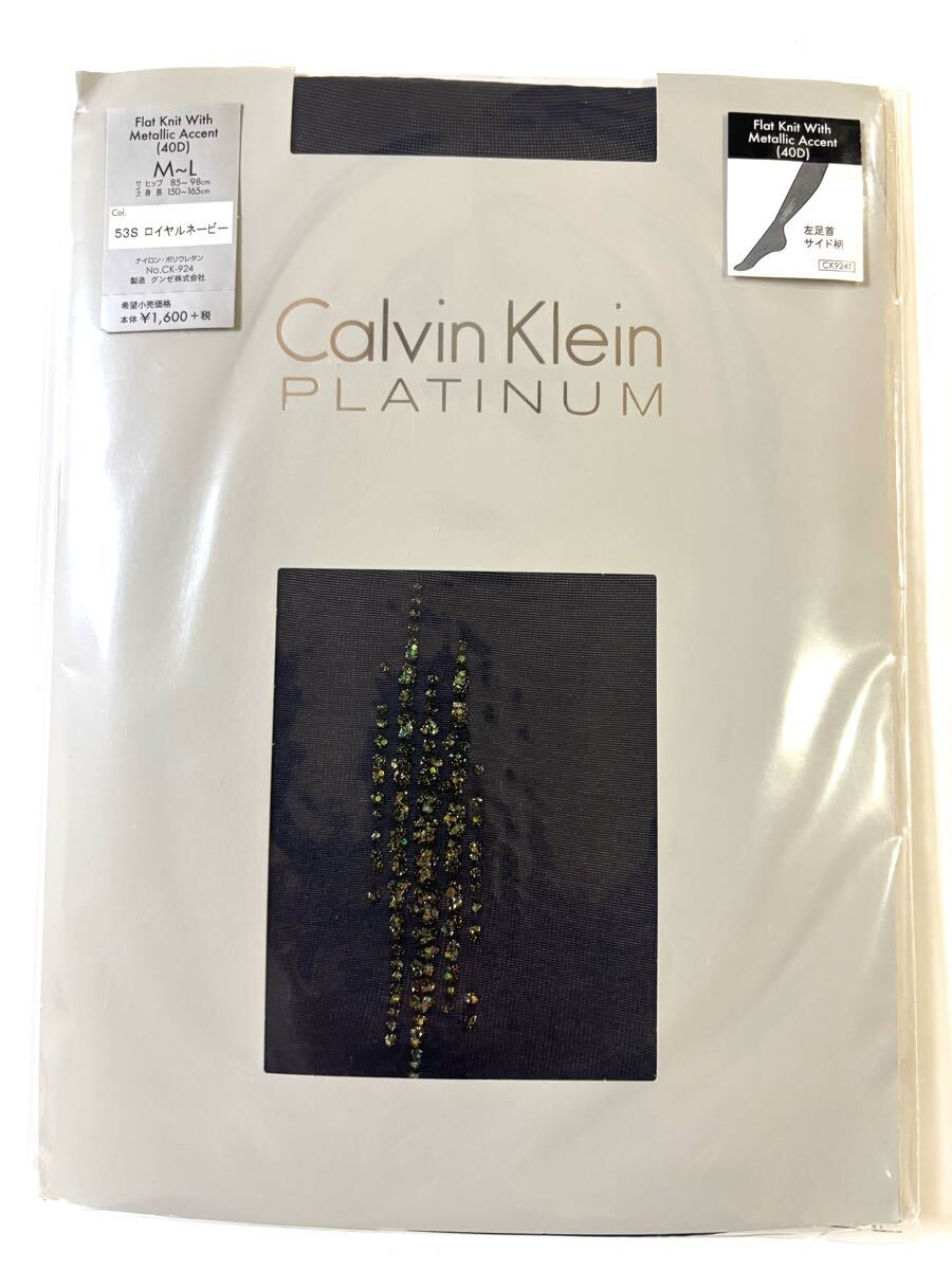 - M〜Lサイズ カルバンクライン サイド柄 40デニール パンティストッキング パンスト ストッキング ロイヤルネービー