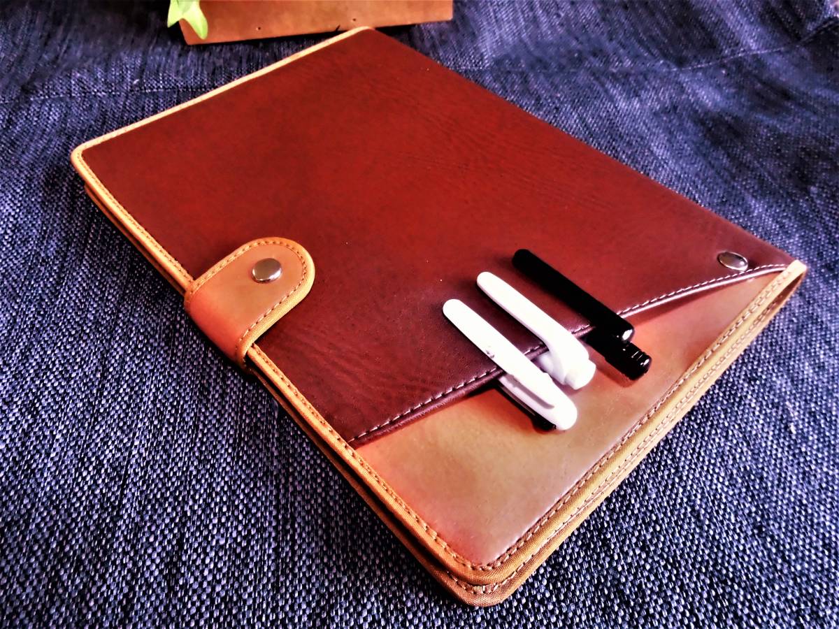 - A5サイズ【ベルト止めCover pockeカバー】合皮■新ブラウン/ヌメ
