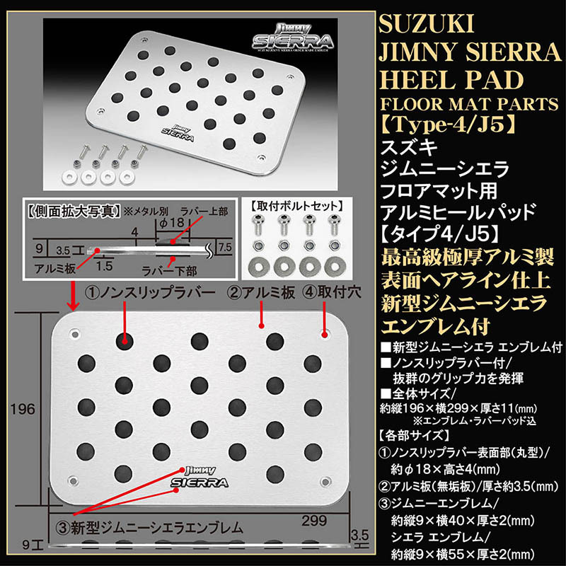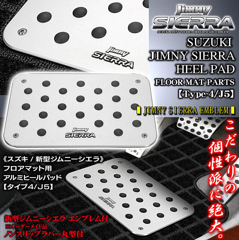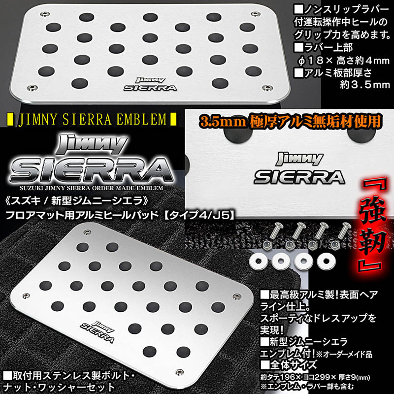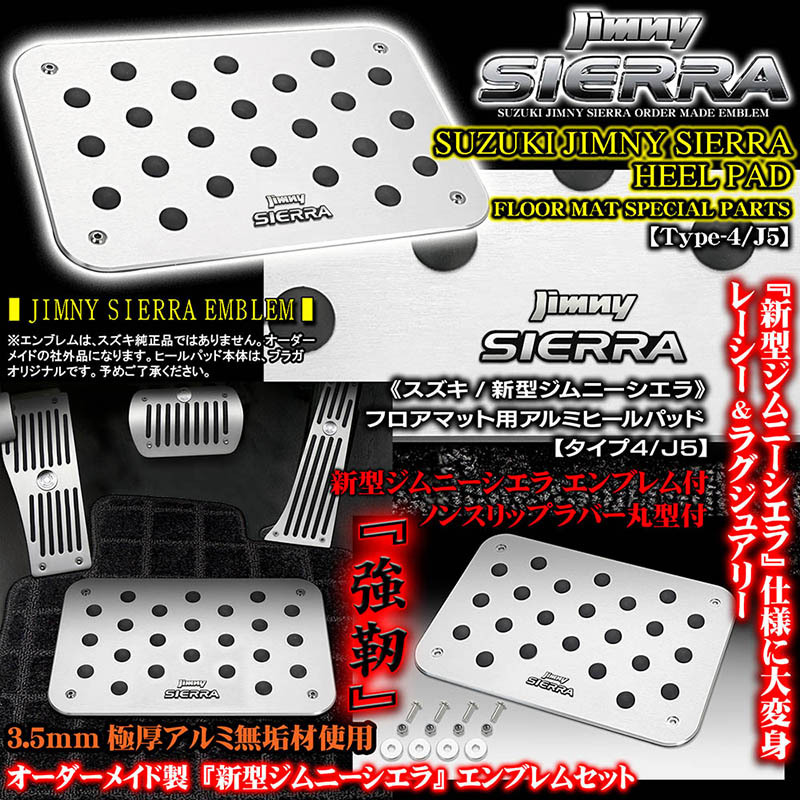 - スズキ/新型ジムニー シエラ エンブレム付/ヒールパッド プレートセット【タイプ4/J5】アルミ製フロアマット用/滑り止めラバー付/ブラガ