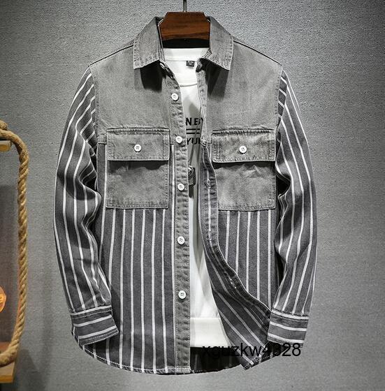 > デニムジャケット 新品 メンズ ジージャン ストライプ 折り襟 シャツ 紳士 トップス ウォッシュ カジュアル 黒 2色 M~2XL