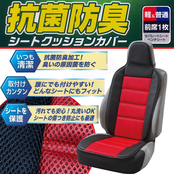 > 軽自動車~普通車 等 汎用 メッシュ素材 抗菌防臭 シートクッションカバー 抗菌メッシュ ダブルクッション フロント用 前席用 1枚 レッド
