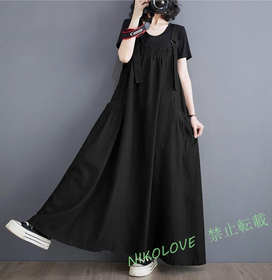 - 新品 ジャンパースカート レディース ワンピース サロペットスカート キャミワンピース ロングワンピース マキシ丈 ブラックお色選択可