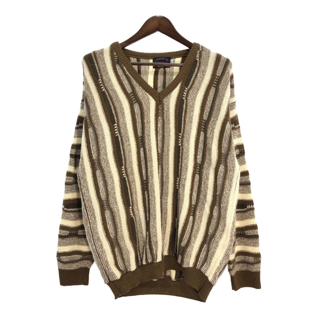 - 90年代 USA製 Milford Vネック 3Dニットセーター ブラウン(メンズ L)中古 古着 T7242