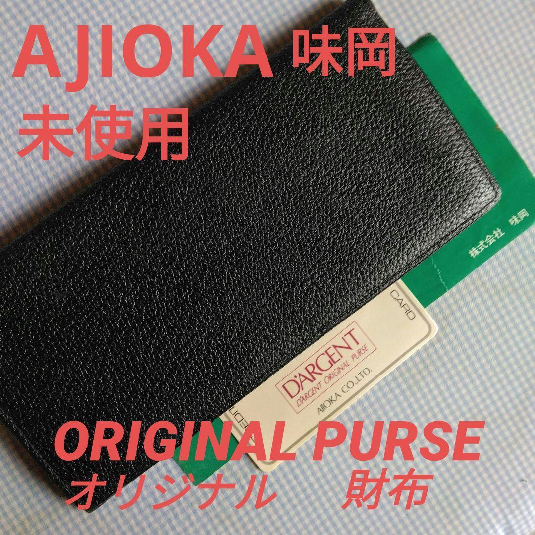 - 【未使用・刻印入り】 Ajioka 味岡 レザー 札入れ 長財布 薄型 黒