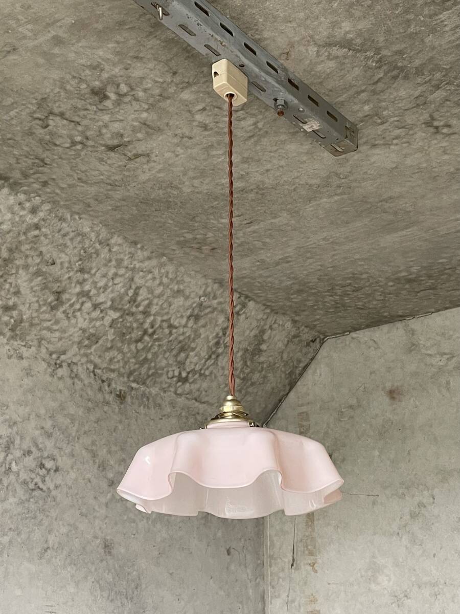 - 45. 40’s フランスアンティーク 古民家 ガラスシェードペンダントランプ フリル 吊り下げ シーリングライト 店舗 美容室