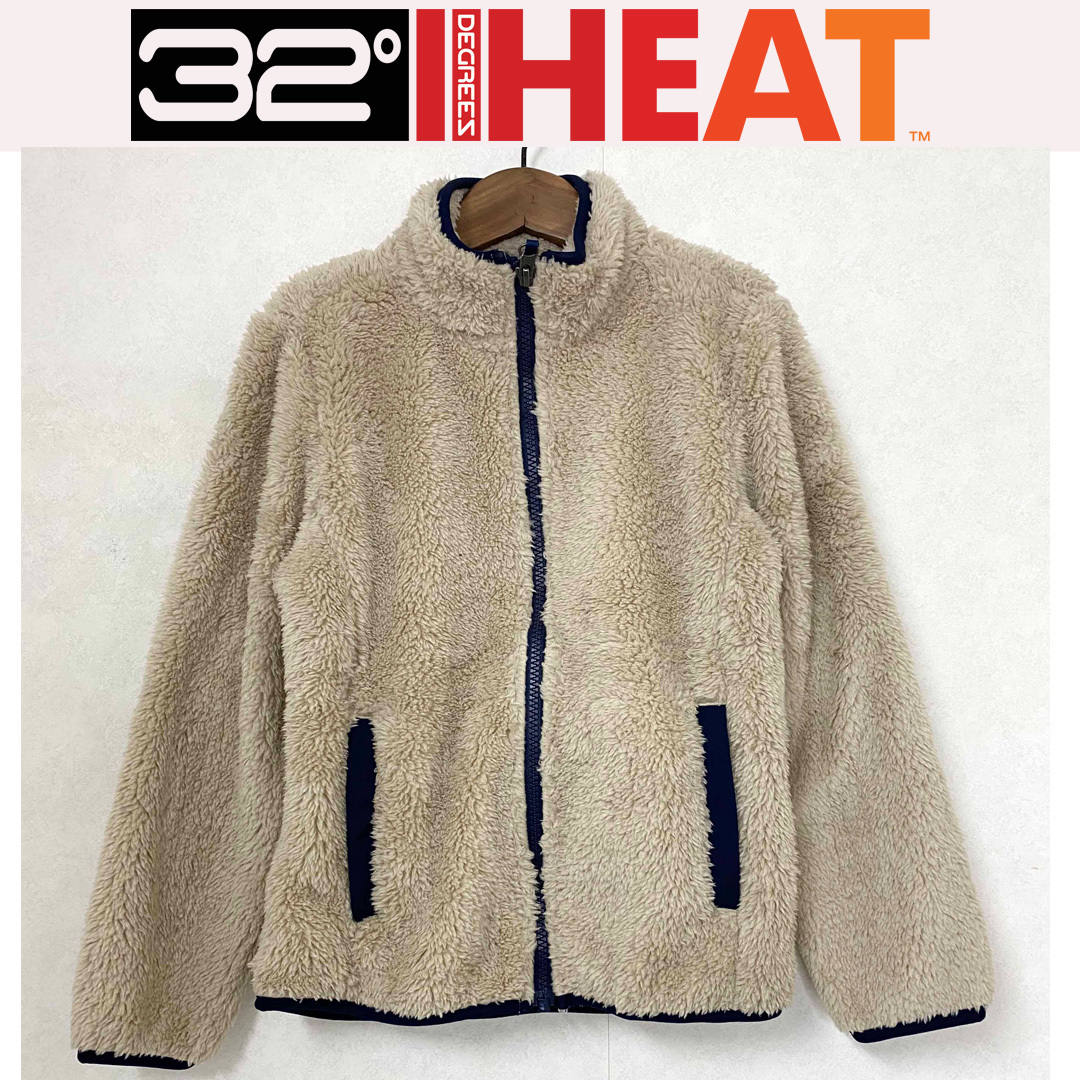 > 新品 130 ★ コストコ 32°HEAT ボア フリース ジャケット ベージュ 7/8 フルジップ アウター キッズ 男女兼用 ボーイズ ガールズ 子供用