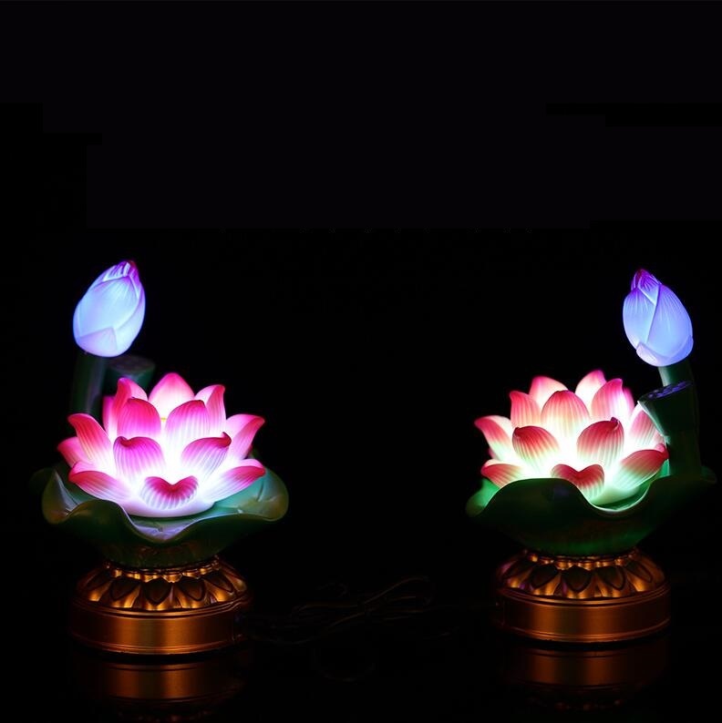 - 新作未使用 蓮花 蓮の花 仏花 造花 蓮 はすはな ロータス LED 7色変化 2WAY給電 ミニ仏壇 仏具 仏前 仏壇 法事 2個セット