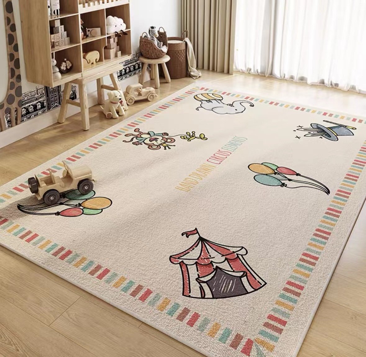 > キュートなカートゥン柄のカーペット 子供部屋用のクロールマット 家庭用滑り止めフロアマット 薄型カーペット