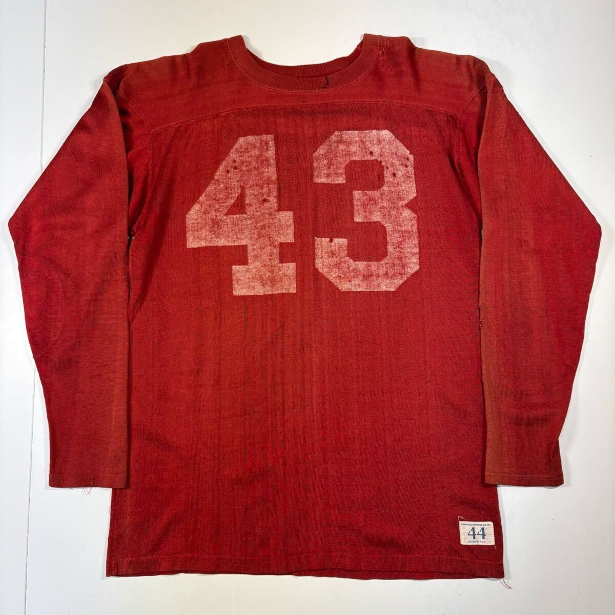 > 【44】60s Vintage CHAMPION Football T-Shirt RED 80年代 ビンテージ チャンピオンフットボール Tシャツ 赤 化学繊維 タタキタグ T1098
