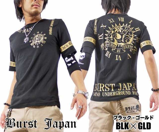 > BURST 半袖Tシャツ メキシカンスカルプリント半袖Tシャツ ブラック×ゴールド 70557 新品ブラックゴールド L
