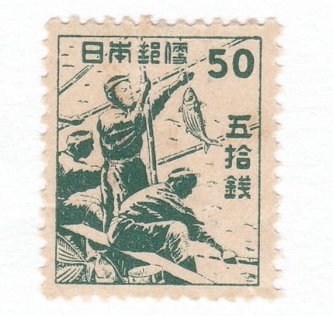 - 切手 かつお釣り 50銭切手 未使用 鑑定書付き