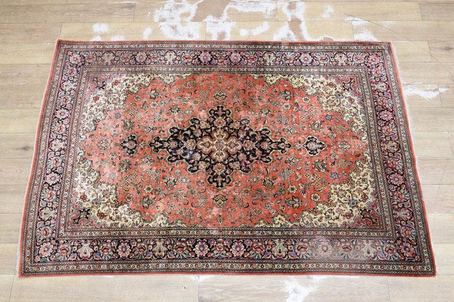 - DB08 中古品 ハンドメイド 手織り シルク 絹100% ペルシャ絨毯 玄関マット キッチンマット センターラグ カーペット