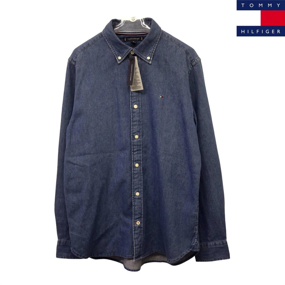 > 新品 トミーヒルフィガー 長袖 ボタンダウン デニムシャツ (M) デニムブルー TOMMY HILFIGER USAモデル 刺繍ロゴ /ba80