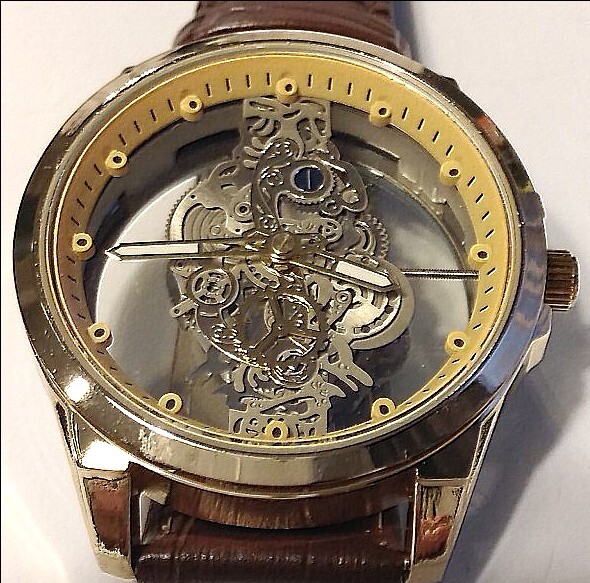 > 訳あり スーパースケルトンフェイス ゴールドリング 機械式腕時計 ブラウンデザインバンド 新品未使用 海外で人気 オマージュ 国内発送