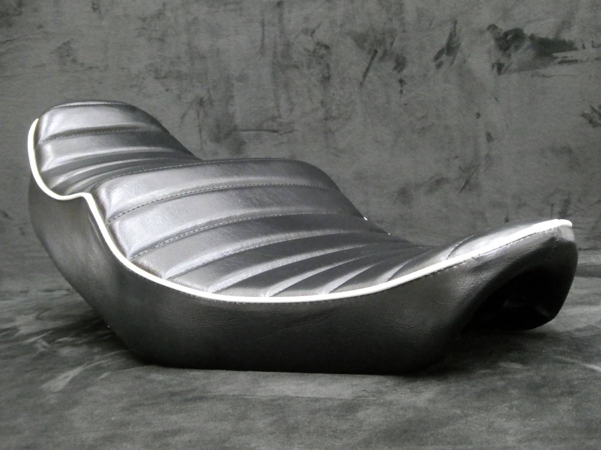 - W800 シート 標準 黒白/完成品 タックロールシート ブラック レザー カワサキ あんこ抜き ローダウン アメリカンカスタムW650 W400