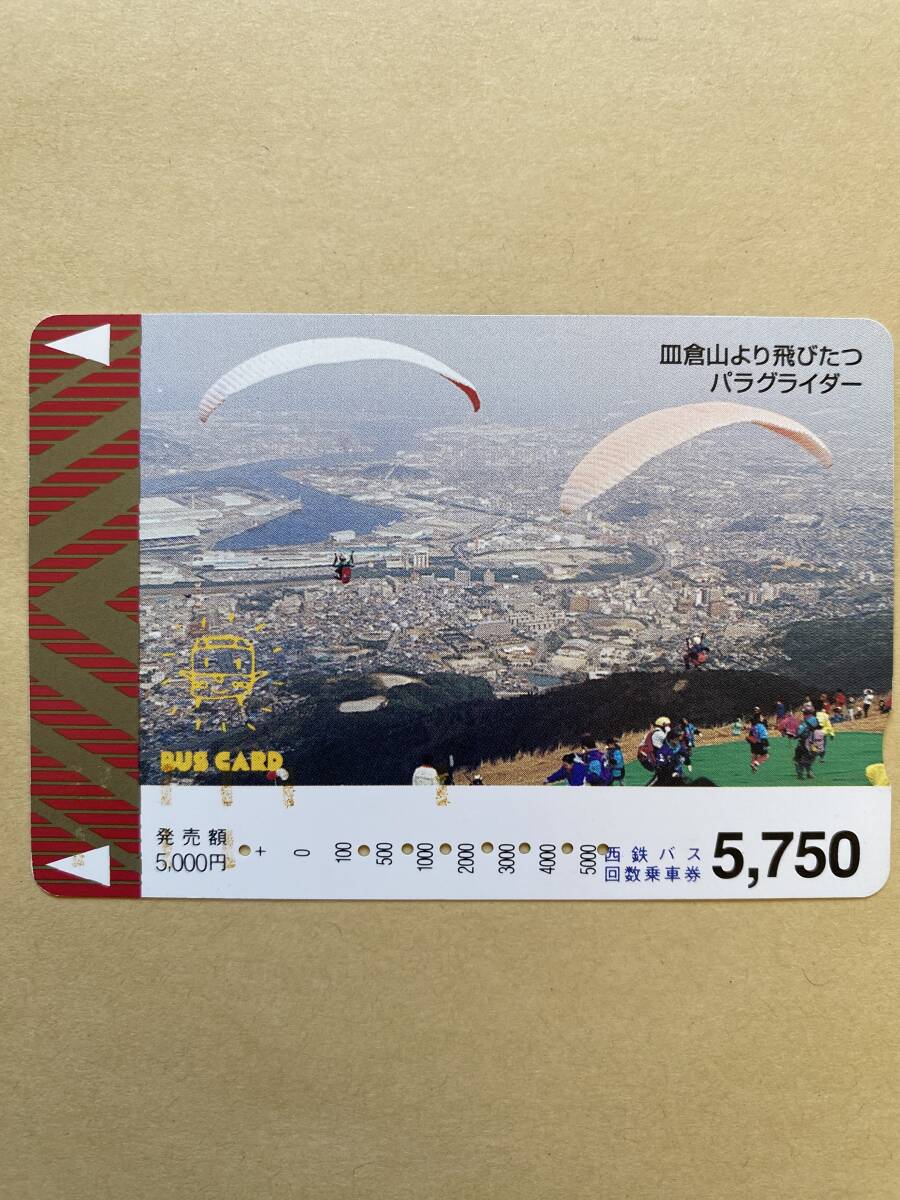 - 【使用済】 バスカード 西鉄バス 皿倉山より飛び立つパラグライダー