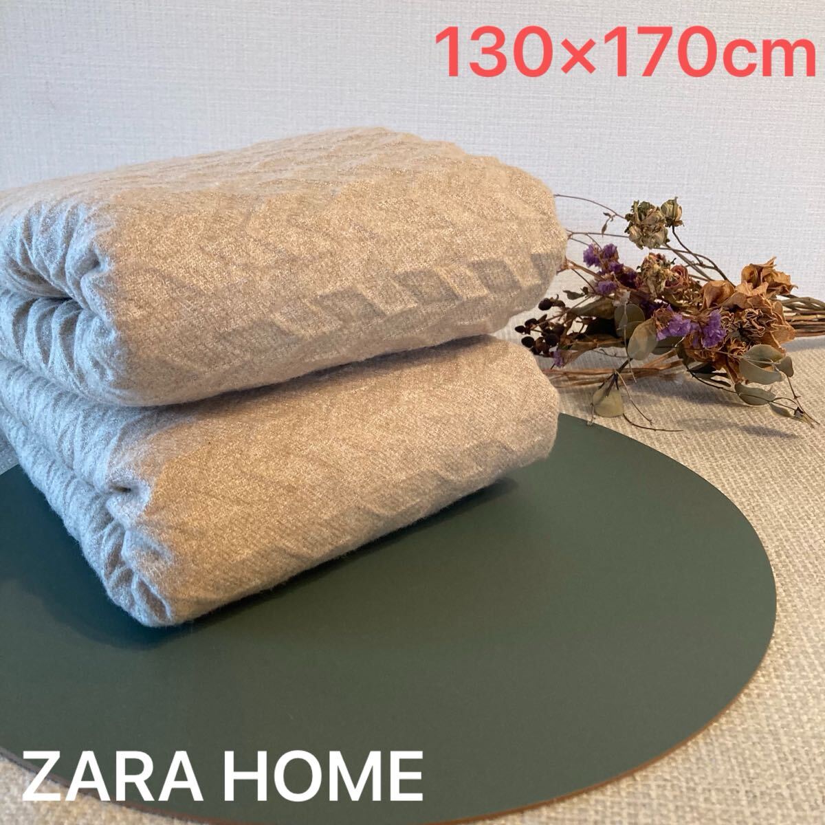 > ZARA HOME ブランケット 130×170 大判 ストール フリンジ ザラホーム インテリア 雑貨 ソファー リネン 美品 ベージュ 寝具