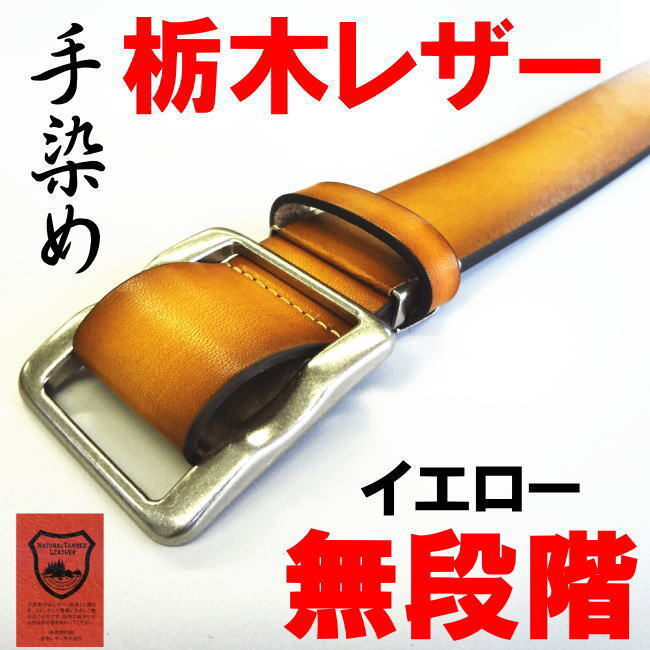 - イエロー 栃木レザー 日本製 手染め 無段階 穴無し スライド 024KW ベルト