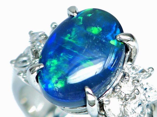 - 【宝石屋本舗】3.04ct 天然ブラックオパール ダイヤモンド0.56ct PT900リング(宝石鑑別書付)
