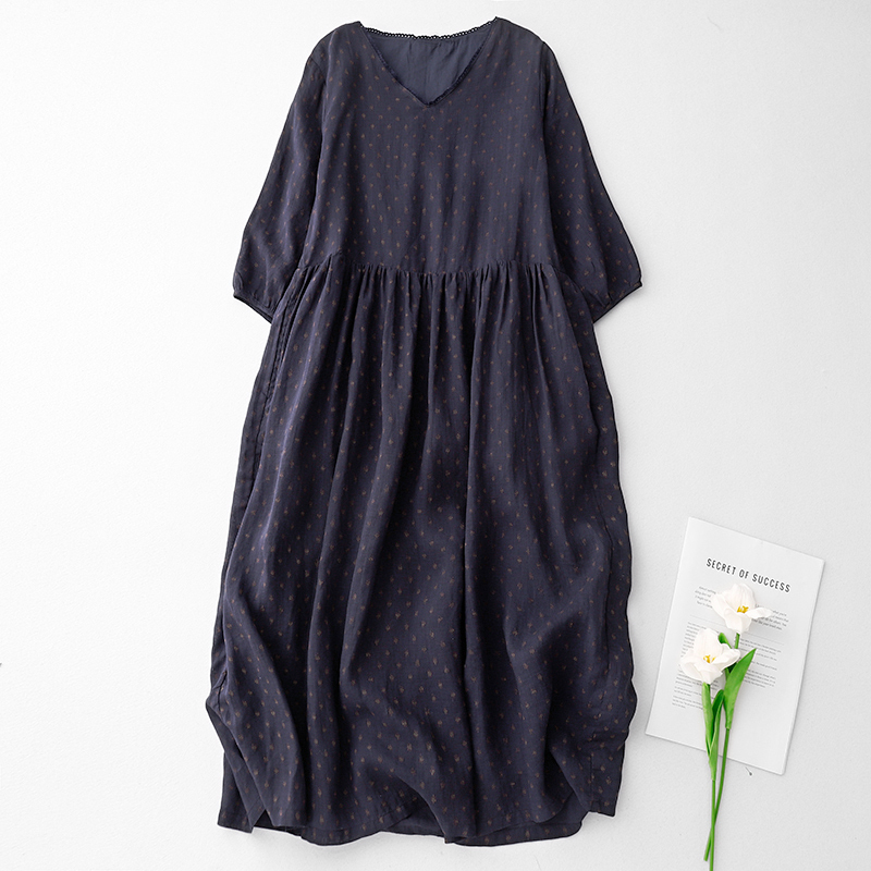 - 夏新入荷*ワンピース ロングワンピース Vネック プリント柄 大きいサイズ 大人 ゆったり 着痩せ 着心地良い 通勤 女性着 大人 上品