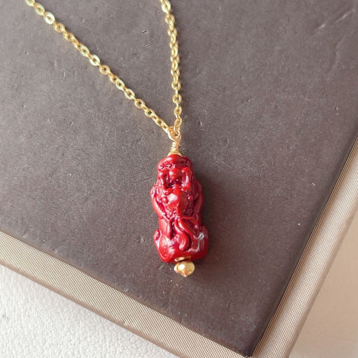 - ◇シナバー(辰砂)◇ネックレス◇ペンダント◇貔貅形◇パワーストーン◇巾着袋付き◇プレゼントにも020P4145