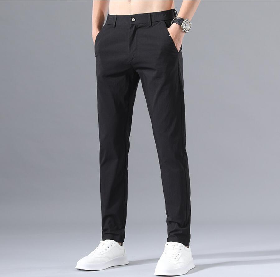 - 新入荷/メンズパンツ 細身 美脚 涼しいズボン メンズ ストレッチ 接触冷感 夏物 無地 チノパン ゴルフパンツ 薄手 通気性 パンツ/ブラック