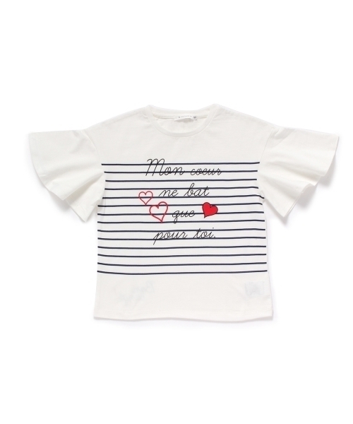 > ラスト 新品 THE SHOP TK ボーダー&ハートプリントTシャツ ネイビー 13(130cm)