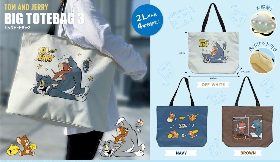 - トム&ジェリー ビッグトートバッグ オフホワイト エコバッグ Tom&Jerry