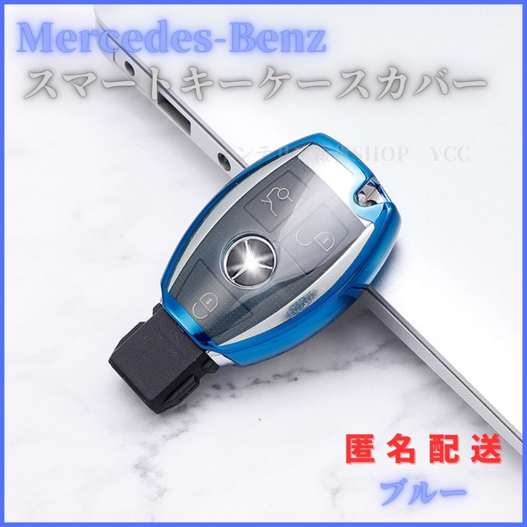 - キーケーススマートキーカバーMercedes-Benz メルセデスベンツ A/B/C/E/S クリア TPU 青