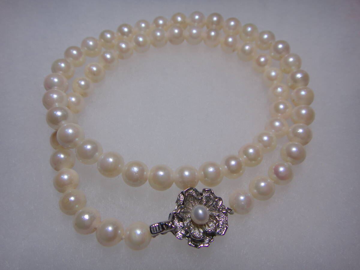 - アコヤ真珠 本真珠 本パール ネックレス 約6.5~7㎜玉 約43㎝ SV925刻印 ヴィンテージ 冠婚葬祭 各種セレモニーなどに Y574