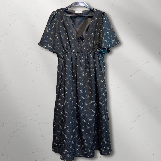 - アースミュージック&エコロジー お花柄 大人かわいい Vネック 半袖 ワンピース サイズF
