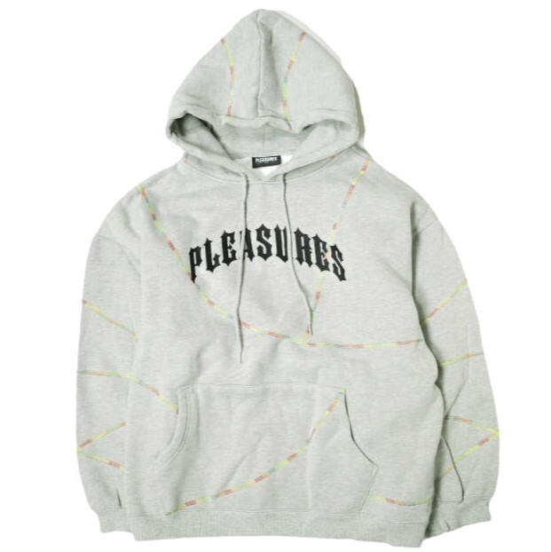 - PLEASURES プレジャーズ Destroyer Contrast Stitch Hoodie 裏起毛 スウェットプルオーバーパーカー XL グレー HOODY レインボーステッチ
