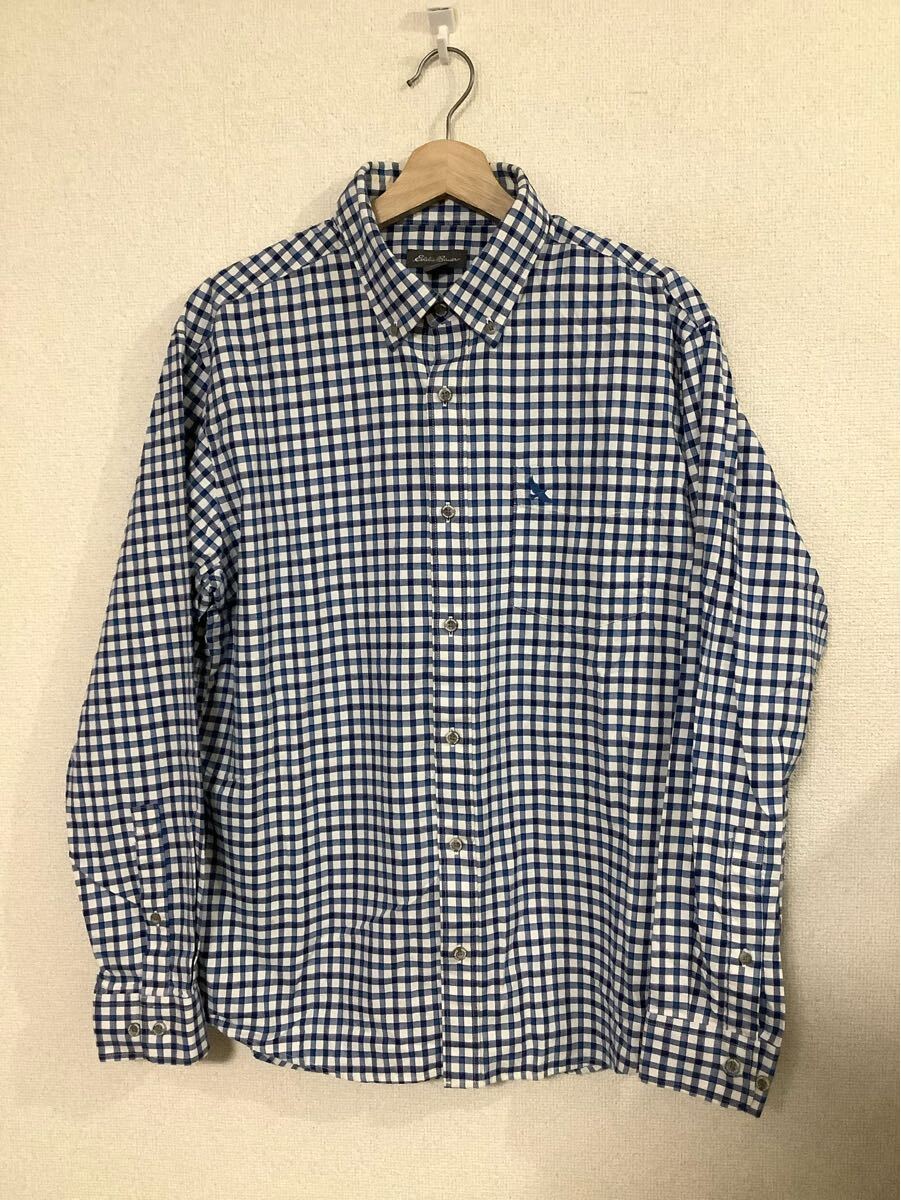> eddie-bauer エディーバウアー ギンガムチェック ボタンダウンシャツ ブルー アウトドア キャンプ メンズ 古着 M
