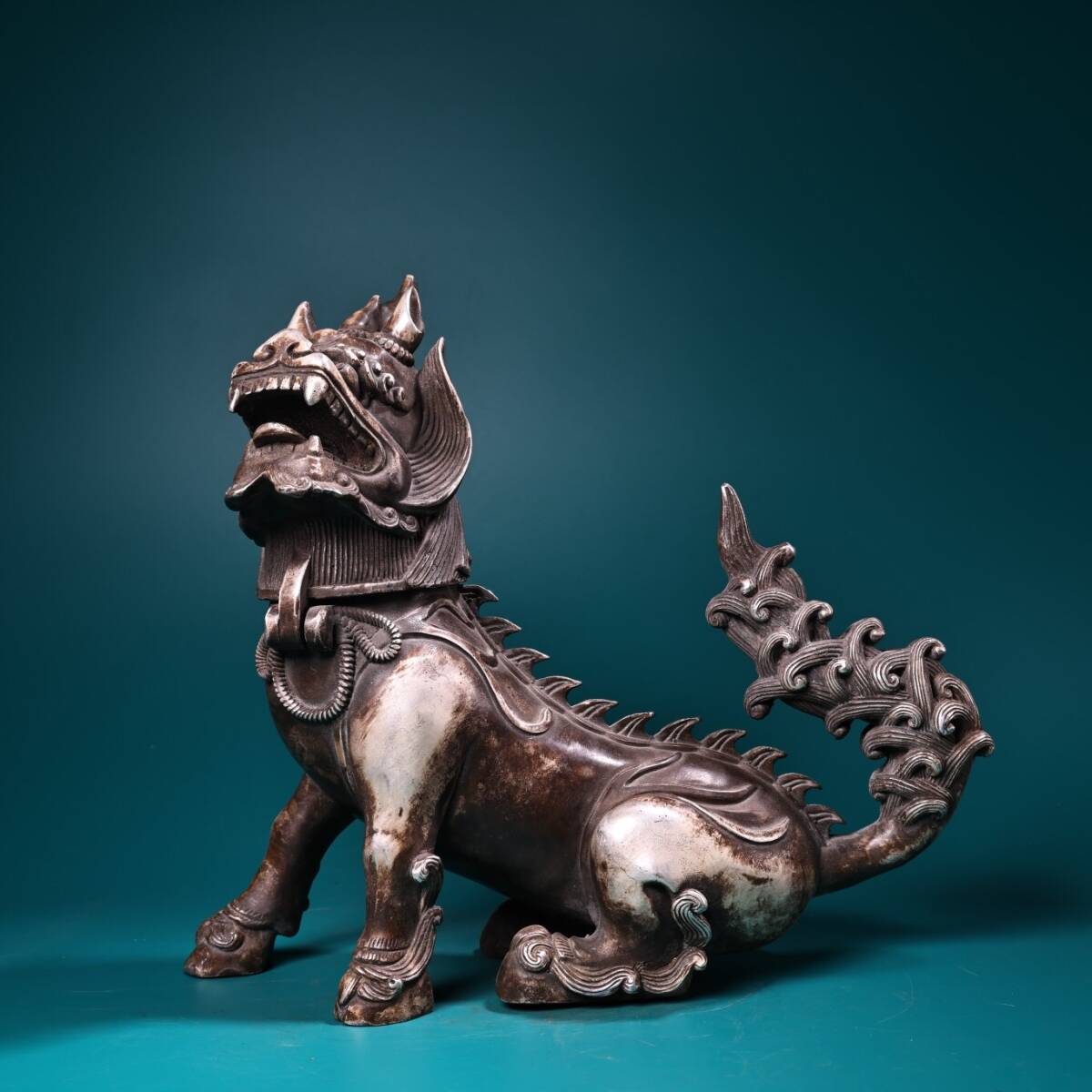 - 『館蔵珍品 銅製 銀鍍 獅子熏香炉』置物 賞物 貴重物品 収蔵品 中国古美術