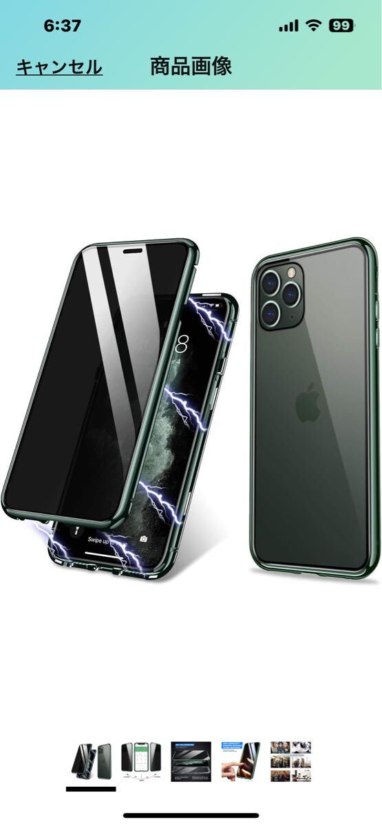 - f428 iPhone11Pro用ケース 両面ガラスケース 前後ガラス+覗き見防止 マグネット吸着 全面保護 9H硬度 QI充電対応(5.8インチ グリーン)
