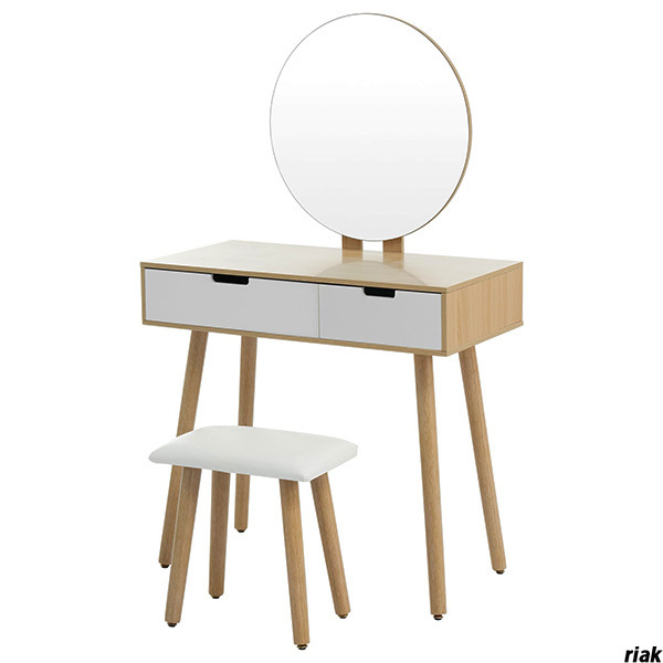 > 【落ち着いた雰囲気でどんなインテリアにも馴染む】ドレッサー スツール付き 幅80cm 姫系 落下防止ストッパー付き ナチュラル