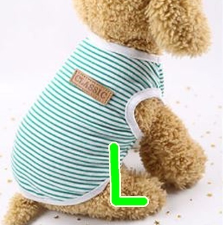 > ペット●タンクトップ Tシャツ●緑【L】ボーダー柄 コットン♪色褪せしない♪春夏、秋口にも!ウェア 中小型犬 犬服 猫 【L】グリーン 夏