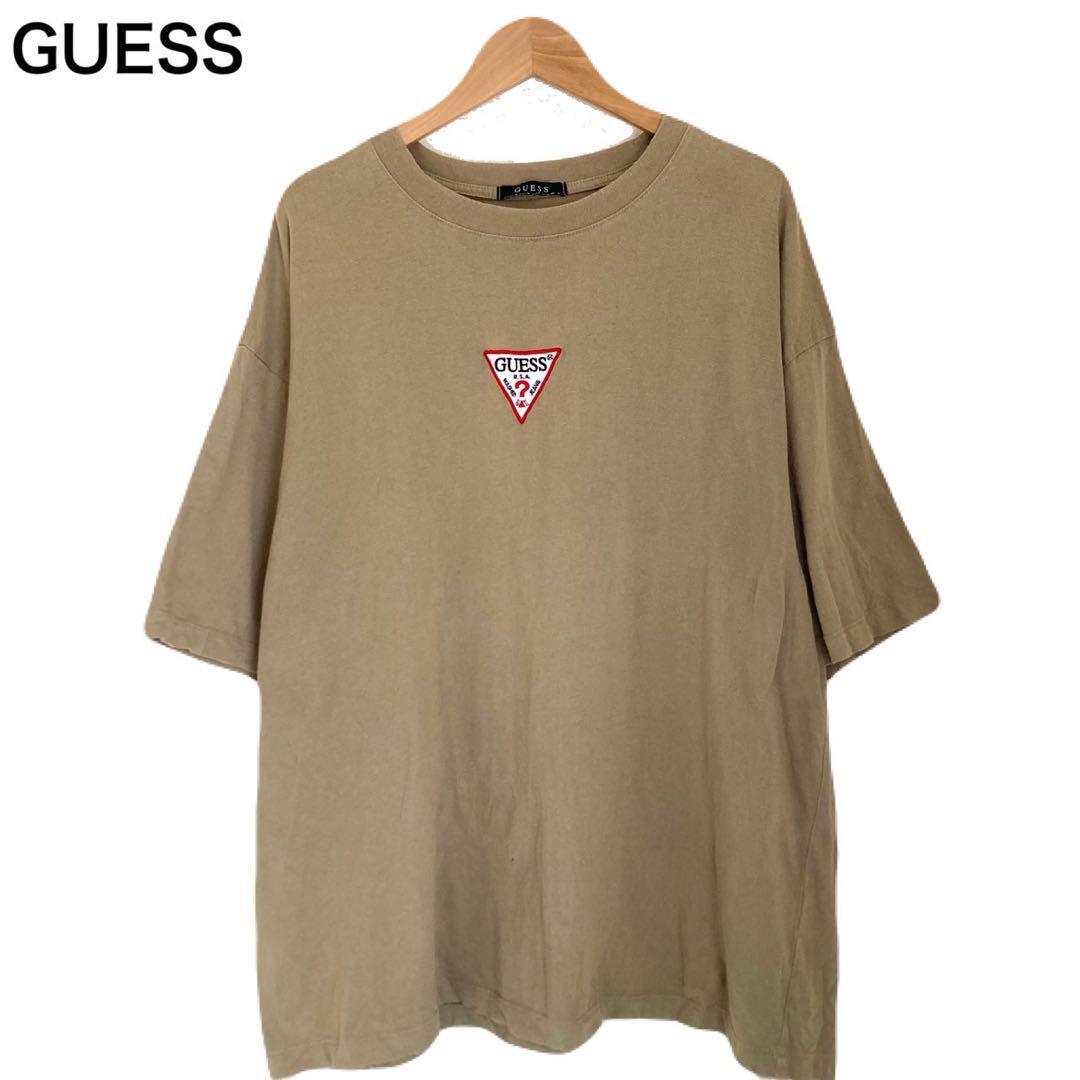 - ゲス Tシャツ 半袖 ベージュ ロゴ ワンポイント コットン アメリカ 刺繍 M