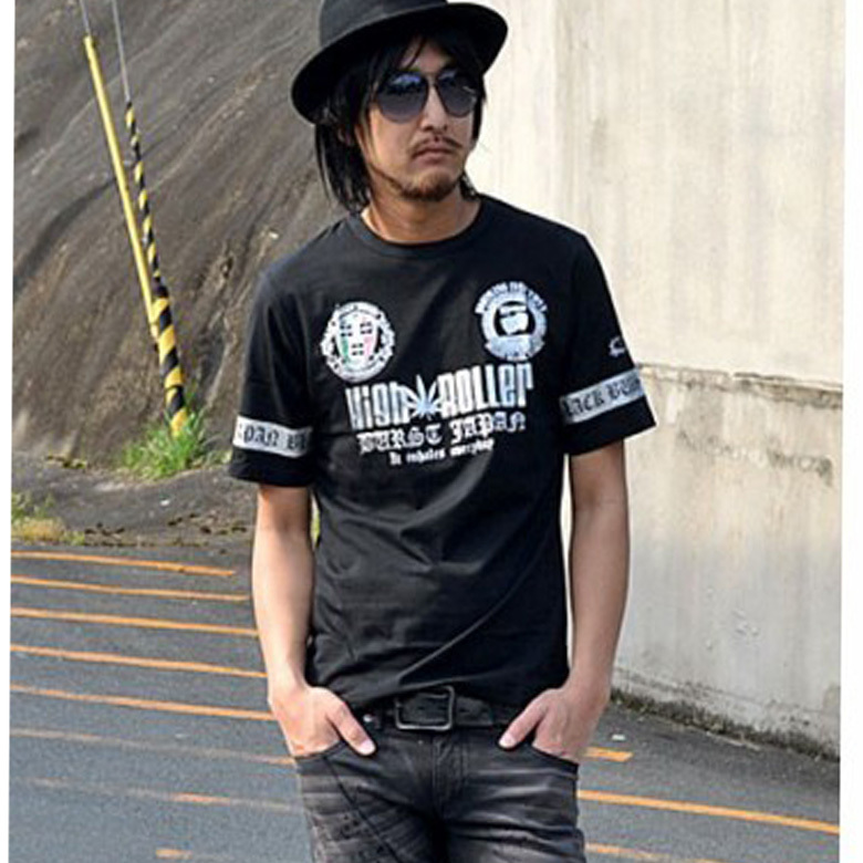 > BURST JAPAN ダイス&マリファナデザイン 半袖Tシャツ オラオラ 70563 メンズ新品 黒x銀 L