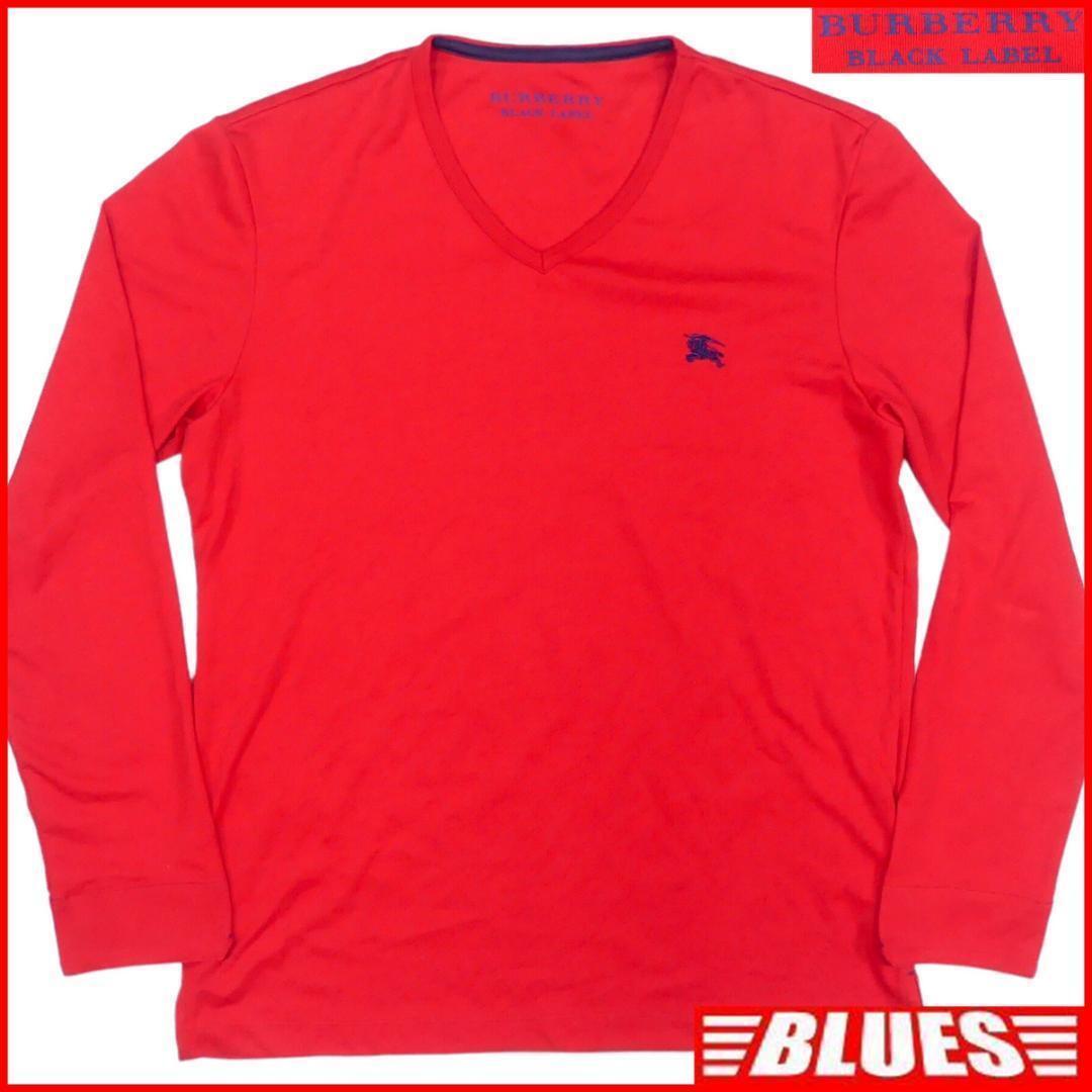 - 即決★BURBERRY BLACK LABEL★メンズL 廃版 Tシャツ バーバリーブラックレーベル 3 赤 三陽商会正規 カットソー 長袖 ナイト刺繍